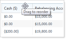 For example, you may want to freeze three columns so that you can always see the Account Name, Account Number, and Rebalance Status when you scroll through the Rebalance Review page.