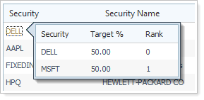 When you're creating a Security Level model, the securities with substitutes will now show as hyperlinks. When you place your mouse over the hyperlink, you can see the substitute securities. In the example below, DELL has a substitute security.