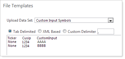 You can now quickly and easily remove custom input symbols when uploading the Custom Input Symbols upload data set. To do this, simply specify None in the Ticker or Cusip column for the Custom Input Symbols upload data set.