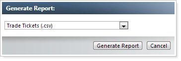 To run this report, on the Reports menu, click Reconciliation Reports and then click Generate Report. In the list of reports, click Trade Tickets (.csv) and then click Generate Report.