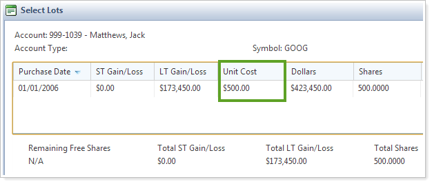 In our last release of Advisor Rebalancing, we delivered sell versus purchase functionality that allows you to specify the lots being sold when trading securities. In this release, we've added a Unit Cost column to the Select Lots dialog.
