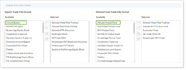 We've added two new trade files, Altruist Equity and Altruist Mutual Fund.