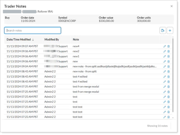 Fixed income traders use trader notes to track their progress as they work through a bond order. Before, each order only stored the latest note that the trader entered. Now fixed income traders can create and manage multiple notes per order to better support their iterative process as they work bond orders.