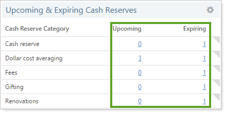 | Upcoming & Expiring Cash Reserves | Yes | Yes |