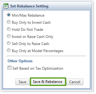 Save & Rebalance on the Set Rebalance Settings Dialog