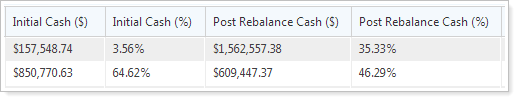 When viewing the Rebalance Review page, Trade Review page or Trade List page, the initial account value and post rebalance cash amounts will be available as a dollar amount and percentage.