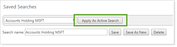 When you save a search on the Saved Searches page, it now saves without running the search. You can still click Apply as Active Search if you want to run the new search and set it as the active search.