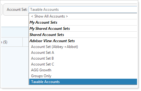 Many of you who also use Advisor View have likely created account sets that you use to group your accounts - for example, you may have an account set that shows only taxable accounts. With this release of Advisor Rebalancing, account sets will now be synced from Advisor View to Advisor Rebalancing.
