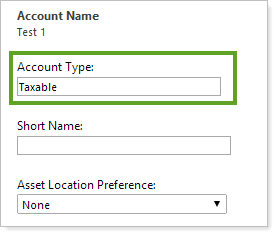 In addition to this change, we're now importing the Account Type field from Advisor View into Advisor Rebalancing. You can find the name field on the Account Configuration tab of the Account Settings page.