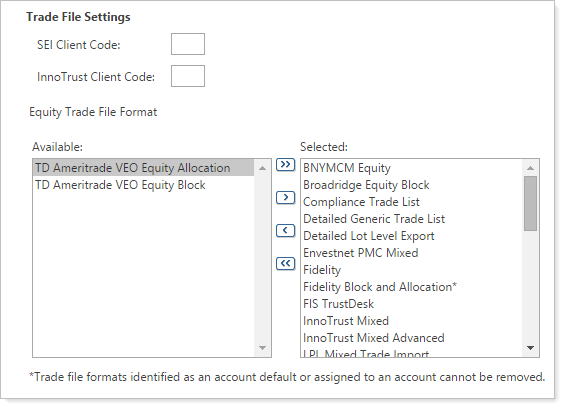 We've added two new trade file types: TD Ameritrade Institutional VEO Equity Block and TD Ameritrade Institutional VEO Equity Allocation. These added trade file types add more options if you use TD Ameritrade Institutional as your custodian.