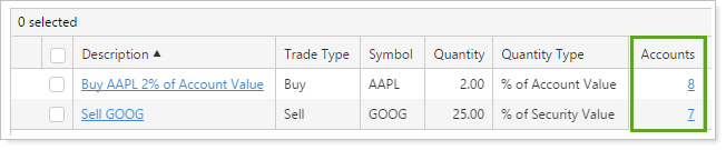 The number of accounts you see within a directed trade now reflects the number of accounts you have permission to access. For example, if there are 100 accounts within a trade and you only have permission to access 50 of those accounts, the Accounts column will show 50.