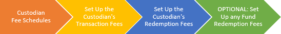 Step 1: Custodian Fee Schedules Step 2: Set Up the Custodian's Transaction Fees Step 3: Set Up the Custodian's Redemption Fees |