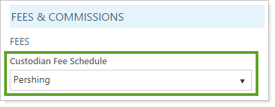 Once you've added Pershing, you can then set up redemption fees and transaction fees charged by Pershing. You can also then associate Pershing in clients' account settings using the Custodian Fee Schedule setting.