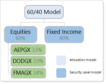 In your 60/40 Model, an allocation model, you want all accounts over $100,000 to have the following default allocations: