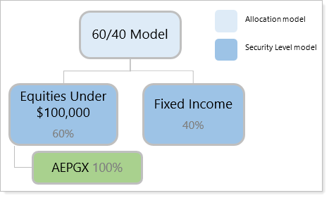 For accounts under $100,000, you want clients to only hold AEPGX for the 60% equity allocation.