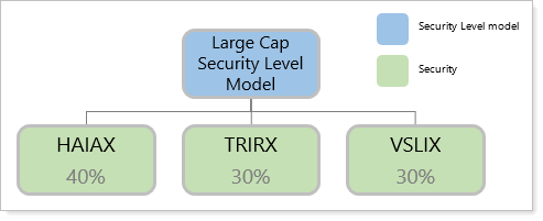 You build the Large Cap Security Level Model as a goal-based Security Level model. The model has the following allocations: