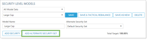 Alternate Security Sets.Alternate security sets allow you to create different versions of the same Security Level model, which you can then assign to specific accounts. These also allow you to create alternate versions of a model using different asset classes to accommodate different account types and sizes. For more details, see Alternate Security Sets in Models.