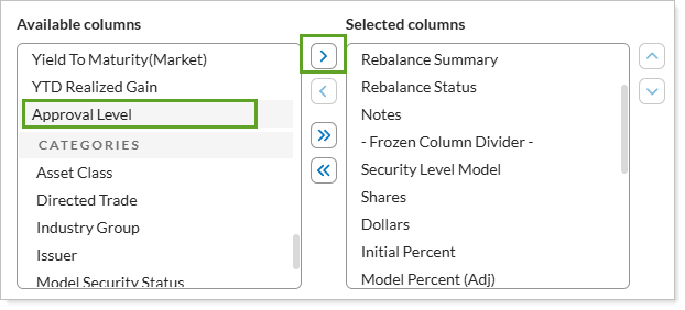 From Available columns, select Approval Level and use the arrow to add it to Selected columns.
