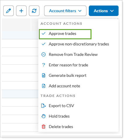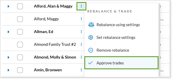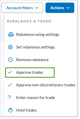Rebalance PageSelect the accounts where you want to approve trades and select Approve Trades in the Actions list.