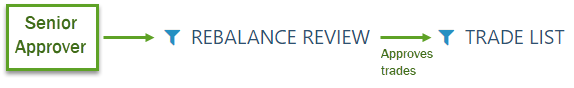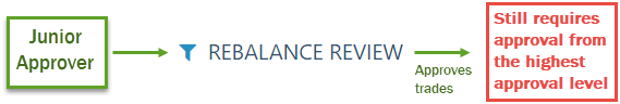 A user with junior approver status reviews trades from a different account on the Rebalance page and approves those trades. After he approves the trades, those accounts are removed from the portfolio administrator's Rebalance page. A user with senior approver status will be able to see those trades on the Rebalance page, because they haven't received approval from someone with the highest approval level yet.