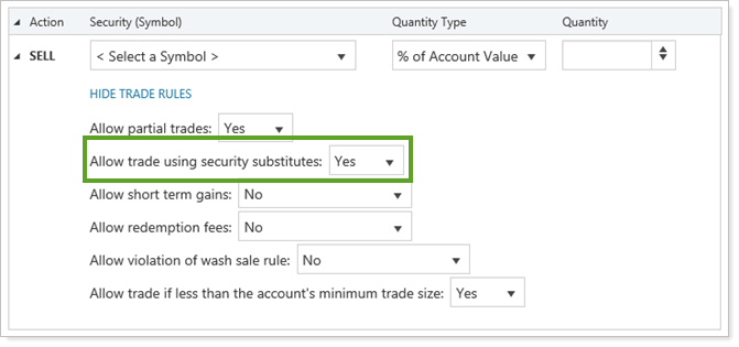 To use substitute securities for directed trades, select Yes in the Allow trade using security substitutes list.