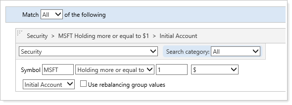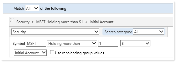 In some cases, a rebalance is more appropriate. For example, a model was changed so that one security was removed and another was put in its place. In this case, a tactical rebalance may be more suitable.