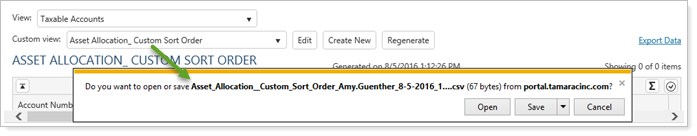 Export Data filenames use the view name and include the date and time so you can easily identify your exported files.
