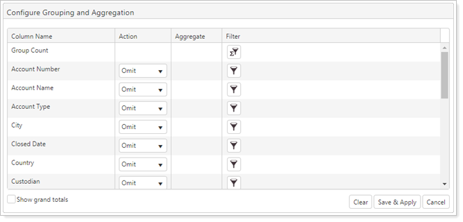 Once you've created this view, you can select the Show grand totals check box to see the totals for numeric columns, such as Total Account Value.