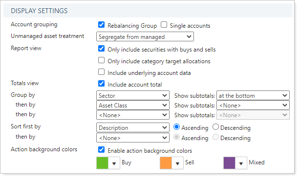- Include Underlying Account Data. Show allocations and recommended trades for individual accounts within a group or not.