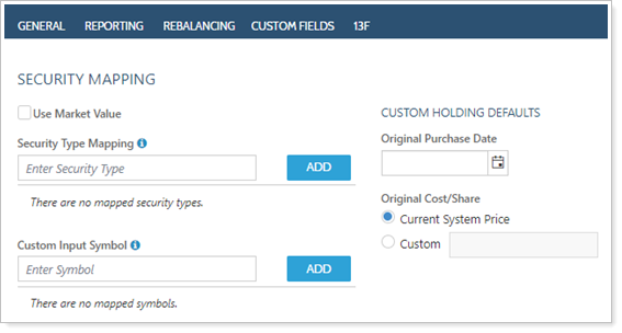 If mapping to a security type that is a tradable security that Tamarac Trading recognizes, do not select the Use Market Value check box.