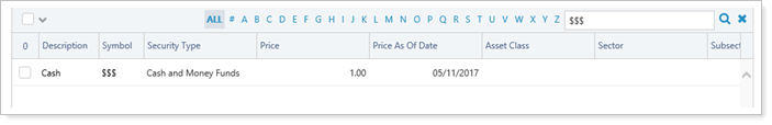 In the Enter Symbol field, under Custom Input Symbol, enter the security you want to be mapped to cash and click Add.