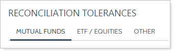 Choose the type of security to which you'd like to set your reconciliation tolerances: Mutual Funds, ETFs/Equities, or Other.