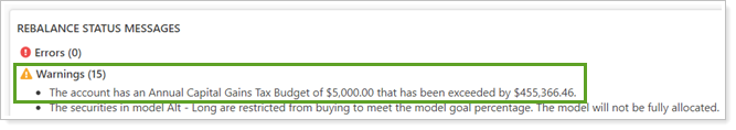 See warnings on the Rebalance Summary page when a proposed rebalance would exceed the capital gains budget.